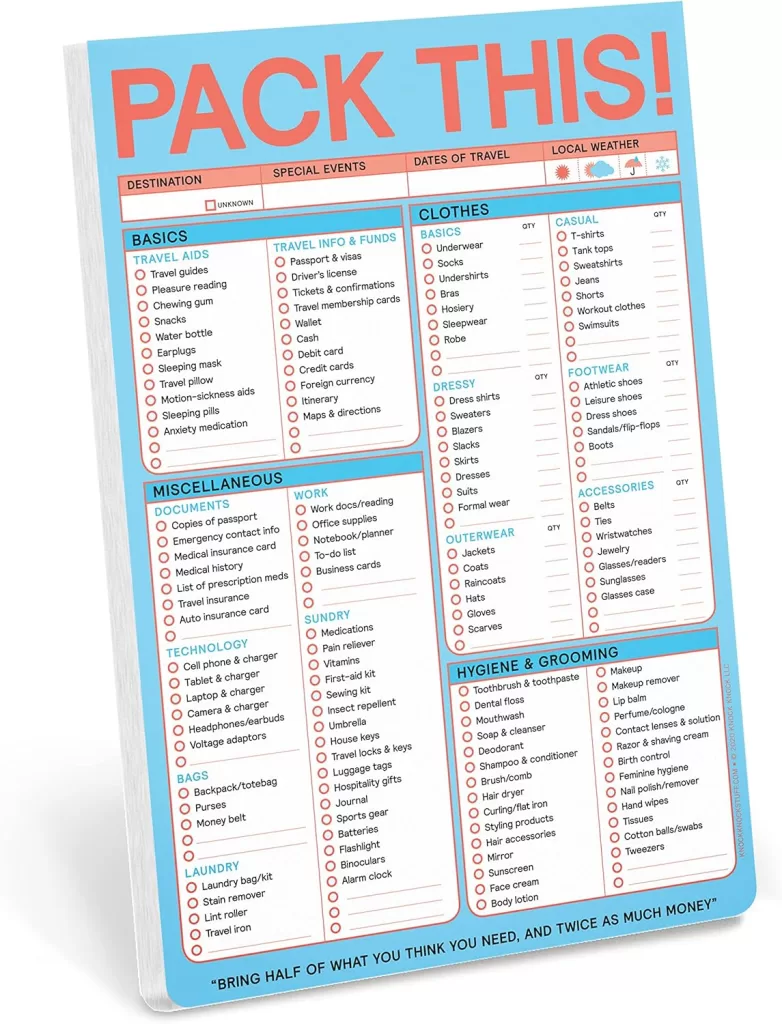 - Packing List – Note Pad